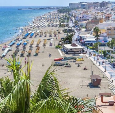Los Boliches in Fuengirola has a loyal following and feels like its own small town by the sea. The beach is long and sandy, the water generally calm, and the promenade flat and perfect for walks at any time of day. Behind the front you find a mix of traditional tapas bars, bakeries and modern cafes, which gives the area a friendly, local tone. It works especially well for longer stays, winter sun and repeat visitors who like to settle into a routine and feel at home by the sea.