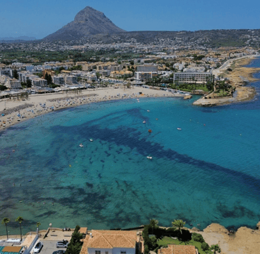 Arenal Beach is Jávea’s main sandy beach — broad, family-friendly, and framed by a lively promenade filled with shops, cafés, and restaurants. The shallow water and soft sand make it perfect for children, and there’s a warm, sociable atmosphere day and night. In the evening, the promenade comes alive with street performers, open-air terraces, and the scent of Mediterranean cuisine. From here you can easily explore Jávea’s charming old town or take a scenic coastal drive towards Cabo de la Nao for panoramic sea views.