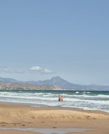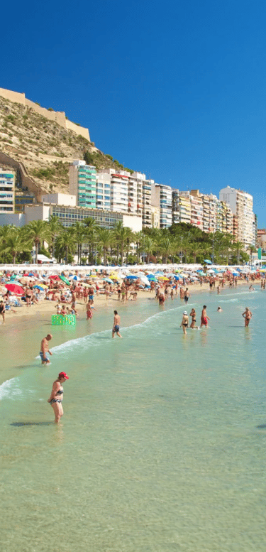 Right in the centre of Alicante, this city beach shows how easily local life and the sea can meet. It takes only a few minutes to walk here from the old town. The beach is wide and clean, edged with palm trees, and backed by a lively promenade.