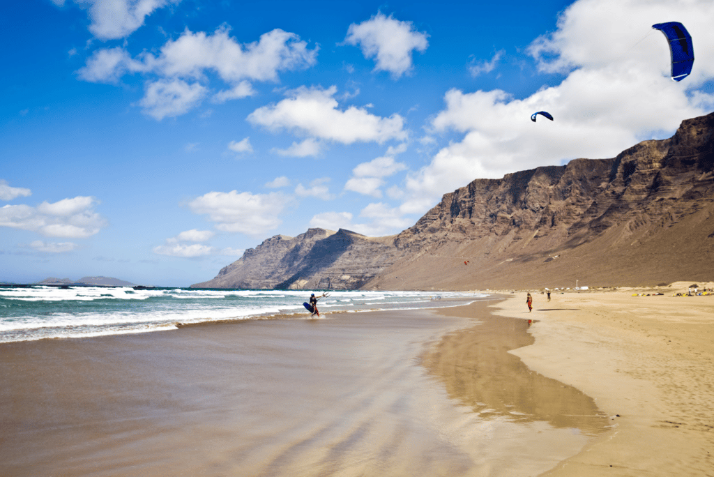 The wind is part of Famara’s soul, shaping the dunes and filling the air with a soft salt mist. When the tide goes out, the wet sand becomes a perfect mirror that reflects the mountains and clouds above, creating one of the most striking views on the island. The nearby fishing village of Caleta de Famara adds to the charm, with small surf shops, simple seafood restaurants and a laid-back local atmosphere. Whether you come to surf, walk for miles along the shoreline, or simply feel the Atlantic’s energy, Playa de Famara leaves a lasting impression. It is easily one of the best beaches in Lanzarote for those who love wide open space and raw natural beauty.