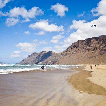 Long beaches and rolling dunes stretch along the coast, especially around Corralejo in the north and Jandia in the south. The sea comes in every shade of blue, often with steady winds that make the island popular for surfing, windsurfing and kitesurfing. Away from the shore, the landscape is open and dry, with soft hills and small villages that underline how much room you have.